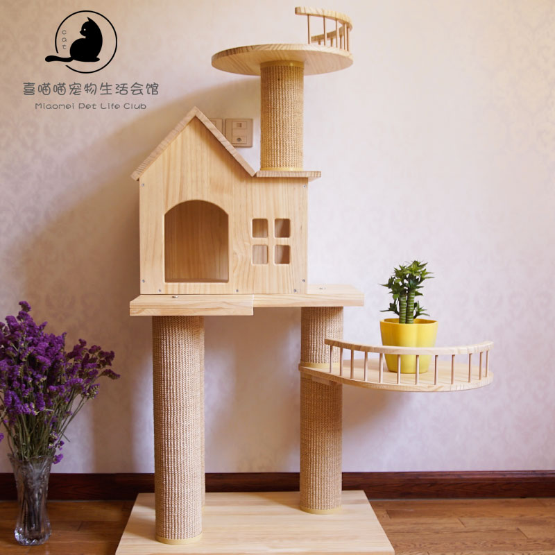 正品别墅实木大小型包邮猫爬架尖角屋原创设计麻抓柱树猫咪玩具热门设计联盟服务商